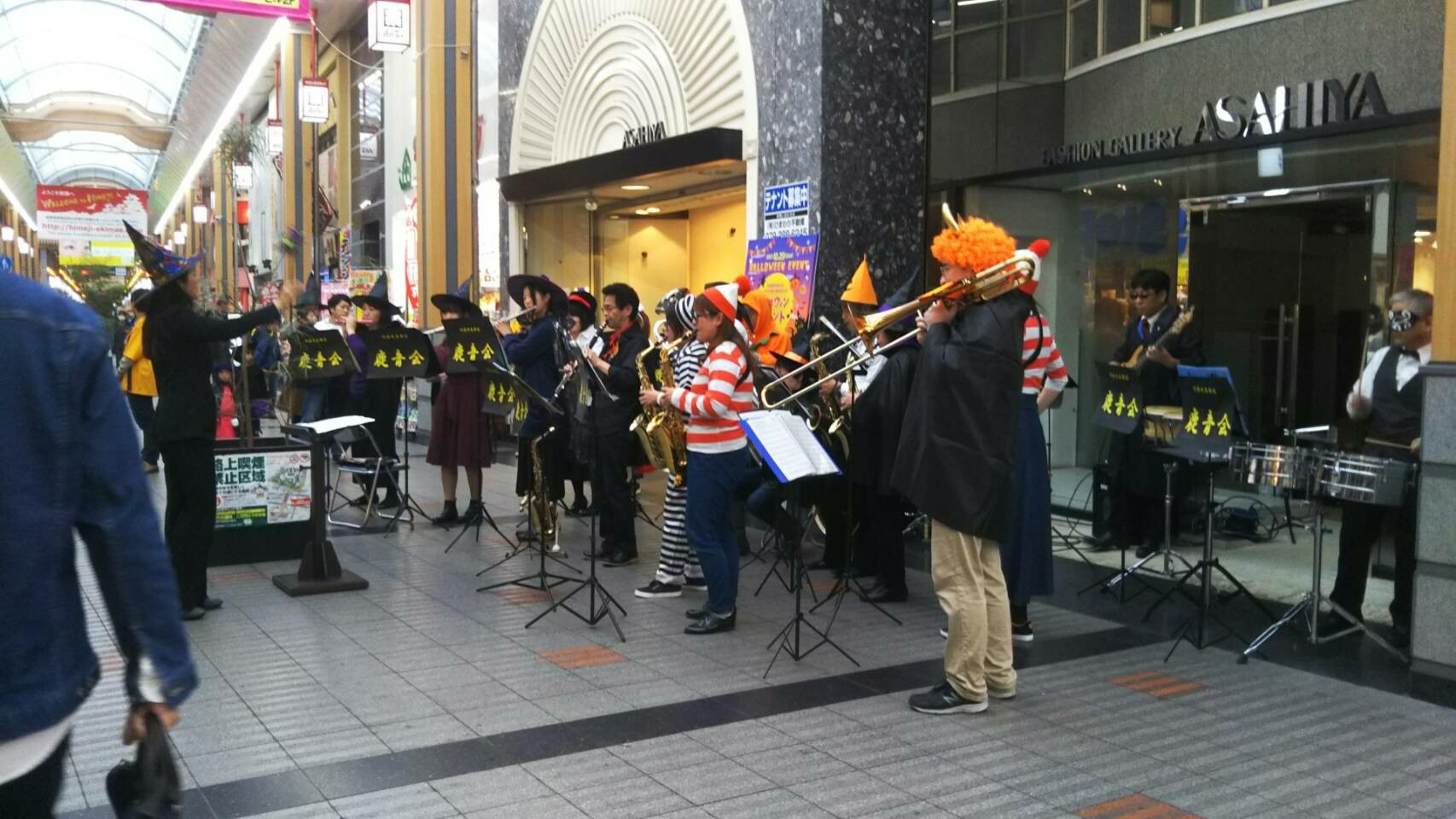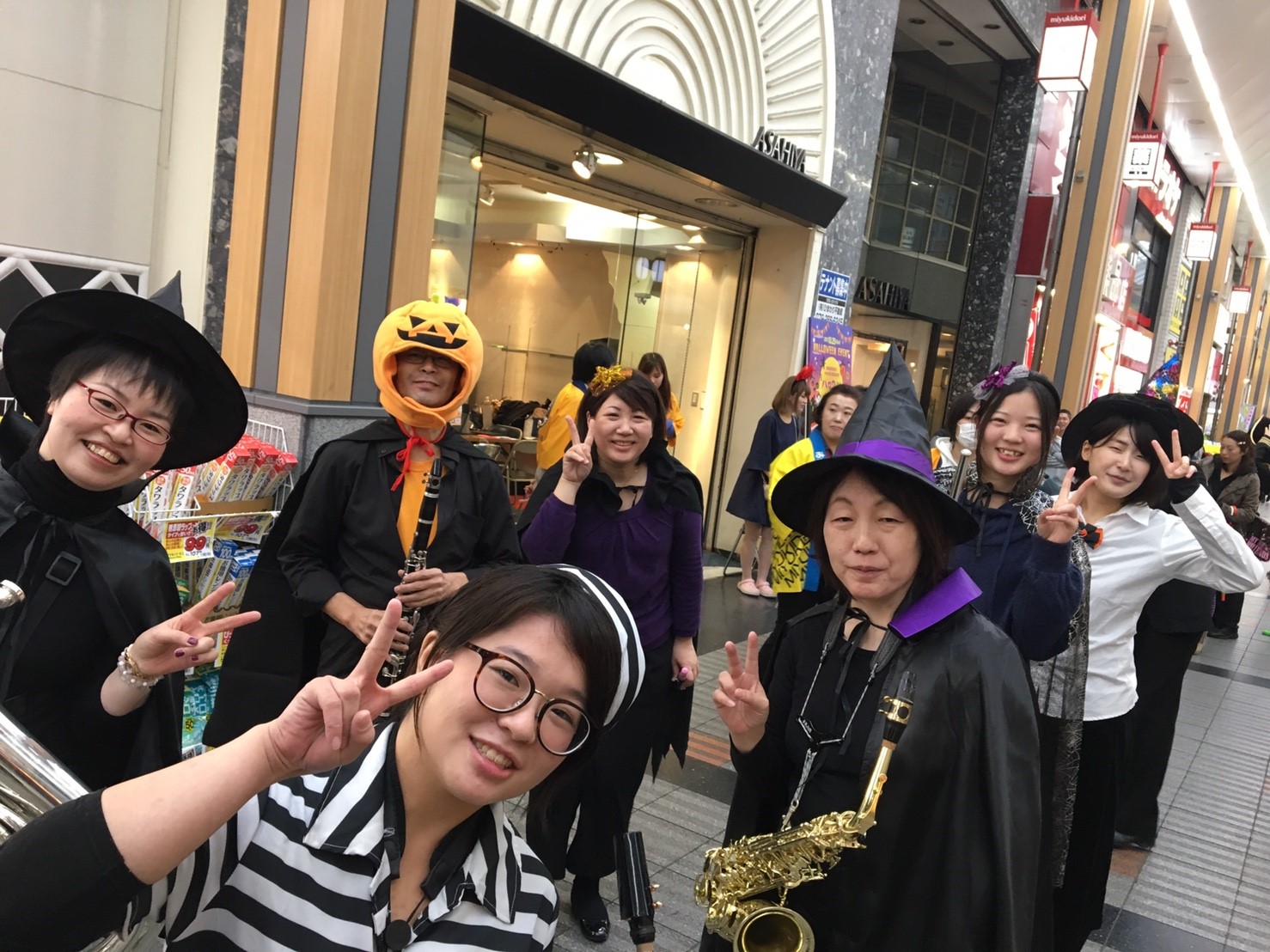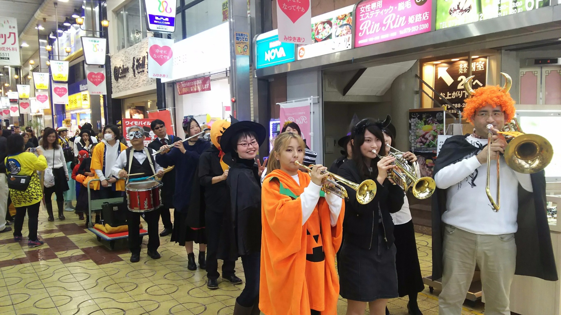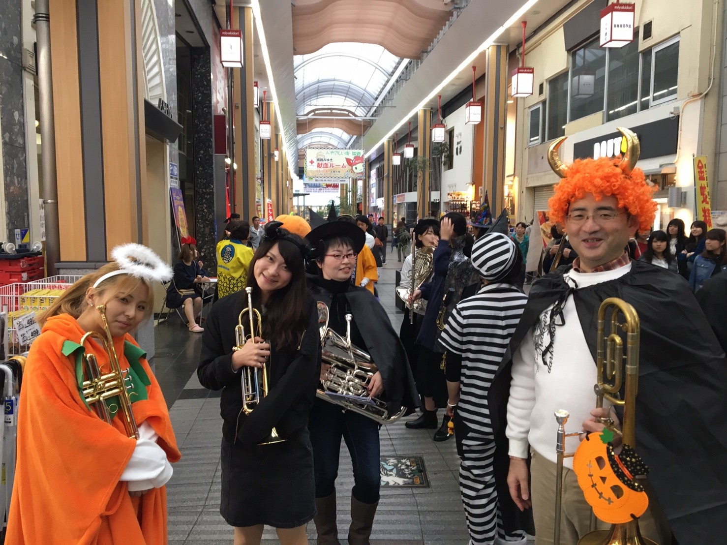 姫路駅前商店街・みゆき通り商店街合同ハロウィンイベントの「ハロウィンパレード音楽隊♪」として演奏参加させていただきました。